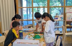 頑張っていました。合間には皆でおやつのアイスクリームを食べたり、時には昼食も一緒に食べたり…。今年の夏休みも、皆が元気で過ごせてよかったです。